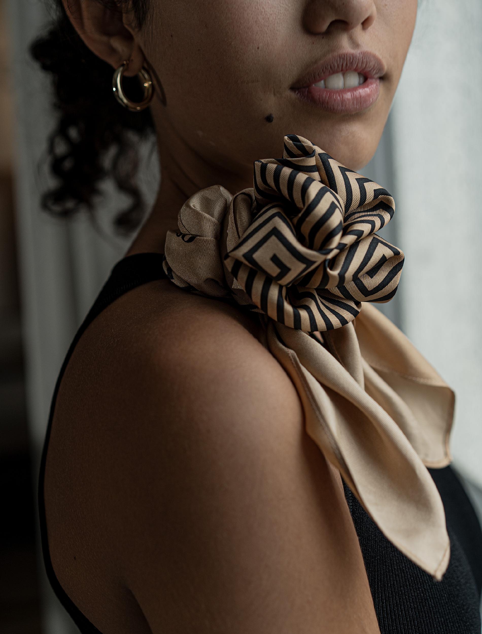 Our statement Carmen scarf features a bold, modern, and geometrical design in a range of colors. Made from high-quality silk, this scarf is soft and lightweight, perfect for wearing year-round. The versatile size of 60x60 cm makes it easy to wear in a variety of styles, from a traditional neck scarf to a head wrap. Whether dressing up for a special occasion or adding a touch of sophistication to a casual outfit, the Carmen scarf is a must-have accessory for any fashion-forward individual.