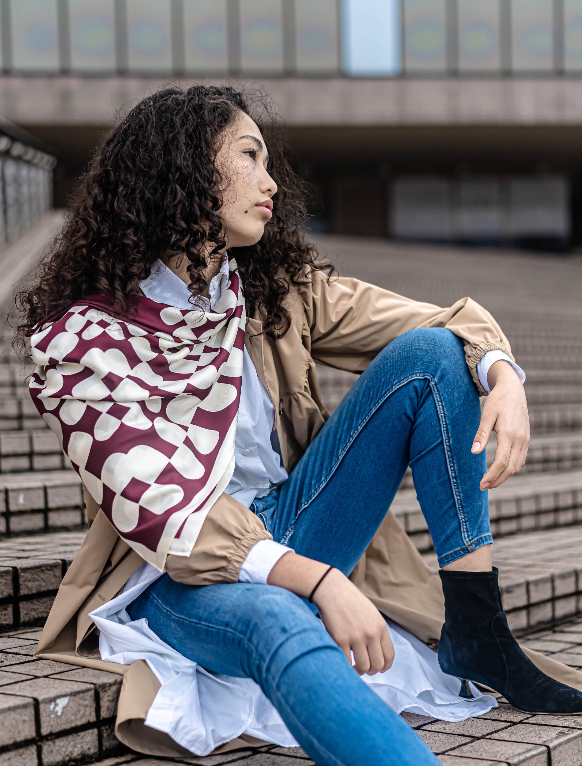 The Emma scarf is a tribute to the beauty of nature, featuring a unique and intricate design inspired by the patterns of the natural world. With its generous size of 90x90 cm, this scarf offers many styling options, from tying it around your neck or head to wearing it as a bandeau top or even as a shawl. Made from high-quality silk, the Emma scarf is soft, lightweight, and comfortable to wear, making it a perfect accessory for any season. Whether you're dressing up for a special occasion or adding a touch of nature-inspired beauty to your everyday look, the Emma scarf is a versatile and practical accessory that will complement any outfit. For more styling tips and inspiration, be sure to check out the styling page and discover all the different ways you can wear the Emma nature-inspired scarf.